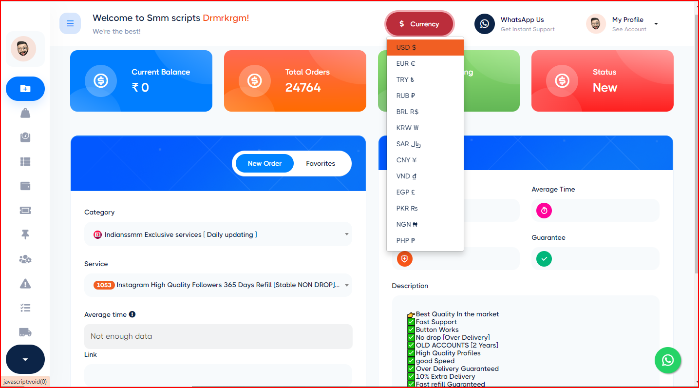 WhitePro is a premium panel script designed to streamline Social Media Marketing services. With intuitive user panels, robust admin tools, and advanced automation, WhitePro helps you provide top-quality services such as Facebook likes, Instagram followers, YouTube views, and more. Customize services and packages effortlessly to expand your business capabilities.