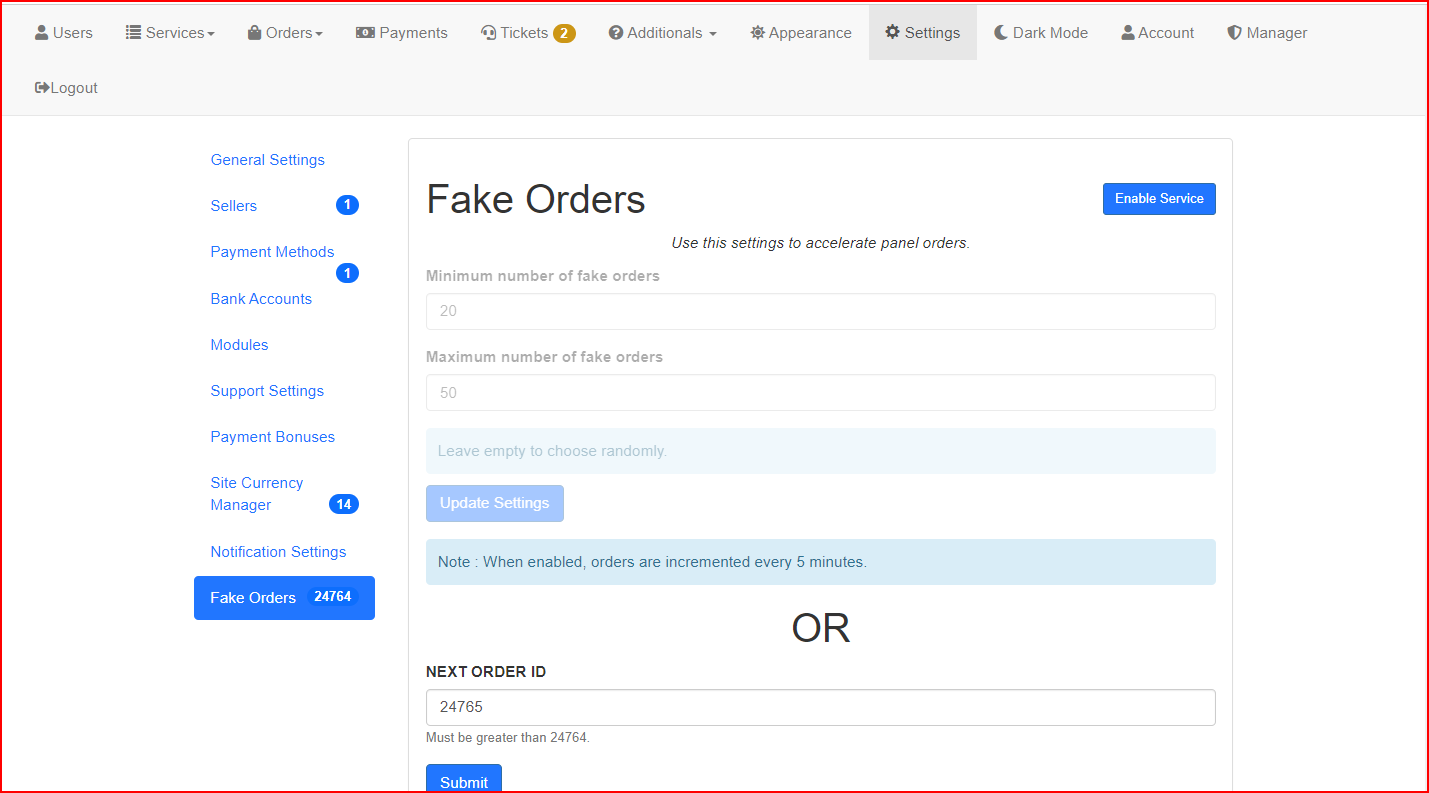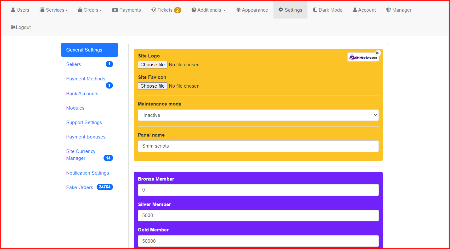 - Advanced Management Tools: Control user activity, orders, and service API integrations.