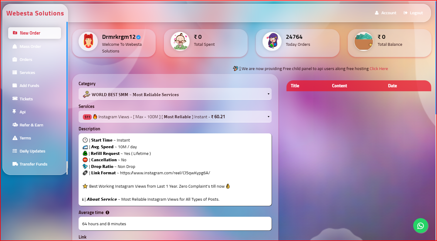 Webesta Official SMM Panel Script – allows you to sell your Social Media Marketing Services with an easy-to-use panel. You can provide quality and affordable SMM Services to your customers. Using the panel, customers can buy packages or services like Facebook likes, Instagram followers, Twitter followers, YouTube views, and many more. You can create as many services & packages as you like, according to your expertise. This script is a complete solution.